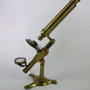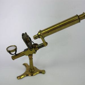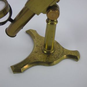 A pretty little Microscope with a desirably shaped foot standing 12" (30cm) high in its working position.